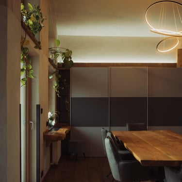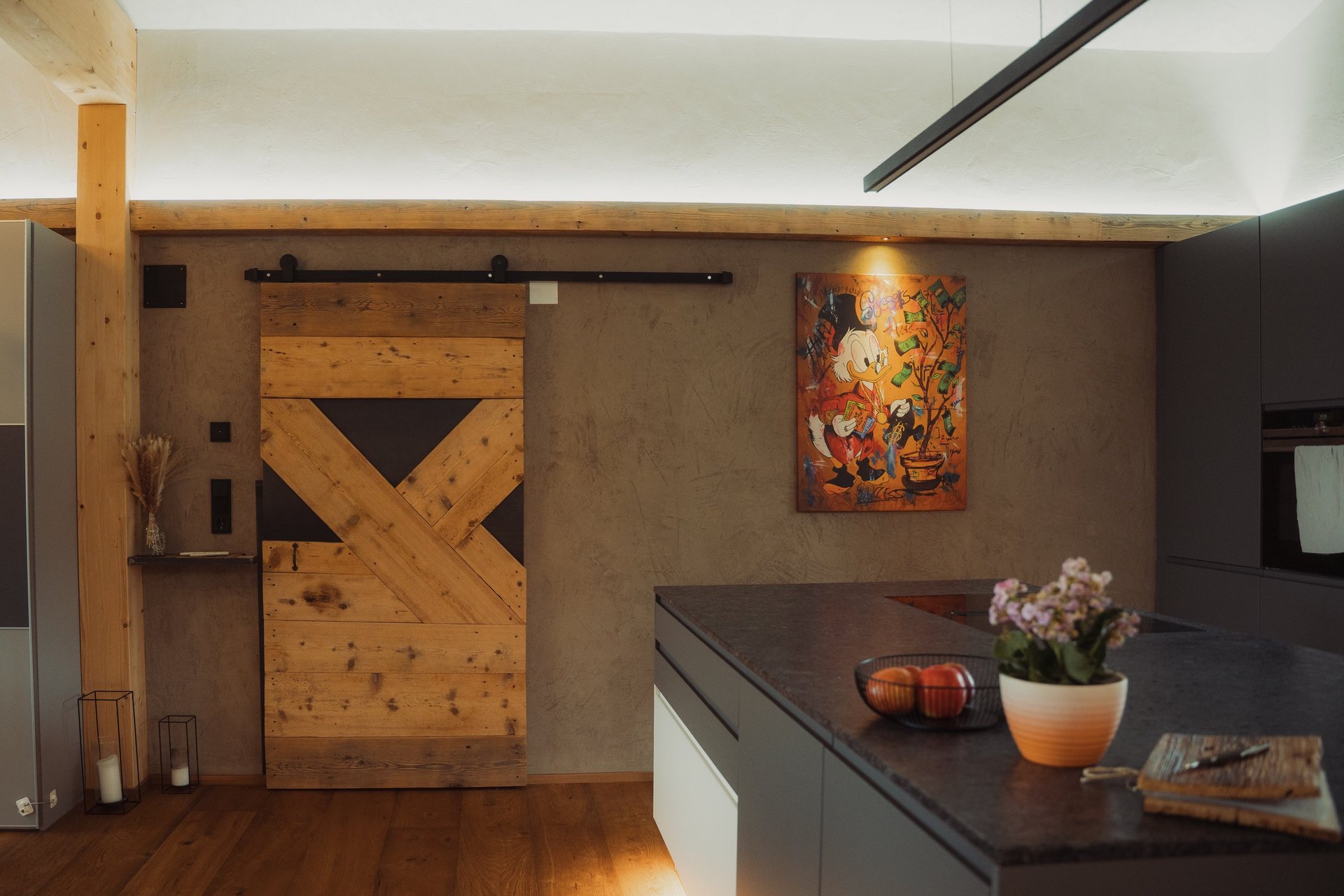 - stilvolle Einrichtung kombiniert modernes Design mit Holzelementen -