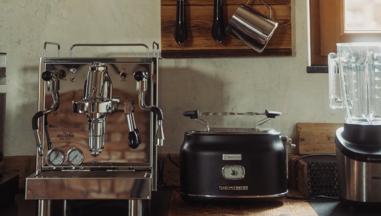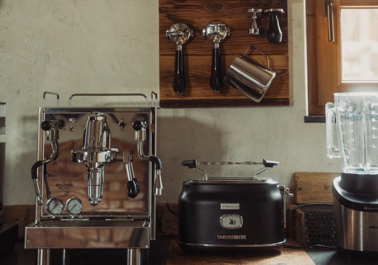 Starte den Tag mit perfekt zubereitetem Espresso aus unserer Bezzera Siebträgermaschine.